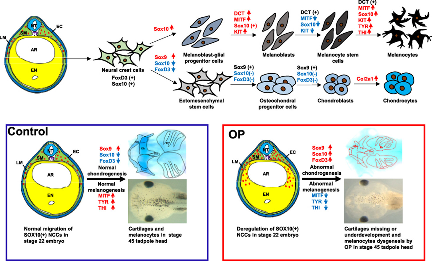 Genes referenced: col2a1 dct ddit3 ern1 foxd3 kit mitf sox10 sox9 tyr xbp1
