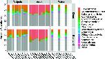 Fig 4. Barplot showing the distribution of bacteria at the phylum level of taxonomy. In each case, the top 15 phyla are highlighted, with all remaining phyla shown in grey.