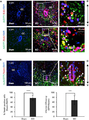 Lacroix, Central canal ependymal cells proliferate extensively in response to traumatic spinal cord injury but not demyelinating lesions. 2014, Pubmed