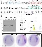 Fig. S1. Efficacy and specificity of antisense morpholino oligonucleotide knock-down of Mcrs1. (A) Sequences of the 5â² ends of the short (S) and long (L) homeologs of Xenopus laevis mcrs1 mRNA. In each line the translational start site (atg) is underlined. The sequences of MO#1 and MO#2, which are completely complimentary to S-mcrs1, are shown in the top line; there are a few mismatches (in black letters) with L-mcrs1. Together, MO#1+MO#2 are referred to as S-MOs. A second set of MOs (MO#3 and MO#4) were designed to block the translation of both S-mcrs1 (middle line) and L-mcrs1 (bottom line) when injected together; the few mismatches are indicated by black letters. Together, MO#3+MO#4 are referred to as S â+ âL MOs. (B) Oocytes were microinjected with S-MOs and either 5â²HA-mcrs1 mRNA (MO-insensitive) or 5â²UTR-mcrs1-3â²HA mRNA (MO sensitive), incubated overnight, and Western blot analysis performed with an anti-HA antibody. Translation of 5â²UTR-mcrs1-3â²HA, which has the same 5â² sequence as endogenous S-mcrs1 mRNA (Figure S1A), is efficiently blocked by S-MOs (+S-MOs lanes). In contrast, translation of 5â²HA-mcrs1, which is missing the 5â² UTR site of MO#1 and whose site for MO#2 is too distant from the translation start site of the HA tag to effectively block translation, is not hindered by the presence of S-MOs. Thus, it can be used as a rescue construct (see Figure S1D). -MOs â= âno MOs injected, indicting efficient translation; uninj â= âuninjected oocytes that do not express HA. (C) Efficacy of the Mcrs1 MOs to knockdown endogenous Mcrs1 protein. Capillary western blot was used to detect endogenous Mcrs1 using a rabbit anti-MCRS1/MSP58 polyclonal antibody (Abcam, ab247013). Top left panel: both sets of MOs (S â+ âL; S) decreased endogenous Mcrs1 levels, compared to uninjected embryo (uninj), by more than 50% at 12.5ng/embryo. Bottom left panel: The decrease was even greater with 25ng/embryo of S â+ âL MOs. Right panel: An example of quantitative Western blot showing signal for uninjected embryo (uninj, blue trace and arrowhead, 2 âs exposure) compared to embryo injected with S â+ âL MOs (green trace and arrowhead, 2 âs exposure). The area under the curve was calculated and normalized to the signal obtained with the Rpn1 antibody in the same sample. (D) Embryo in which S-MOs were injected on one side (right side of image), raised to a neural plate stage and processed for ISH detection of foxd3 expression. Control expression is shown on the left side of the image. S-MOs cause significant reduction in foxd3 expression in 63% of embryos (n â= â112). (E) Two embryos in which S-MOs were injected on one side (right side of image), followed by injection of mRNAs: 5â²HA-mcrs1 mRNA, which is insensitive to MO knock down (Fig. S1B), and βgal mRNA, which is a lineage tracer (pink nuclei). Control foxd3 expression is shown on the left side of each image. Expression of foxd3 is restored in 86.4% of embryos when MO-insensitive mcrs1 mRNA is supplied (n â= â59). |