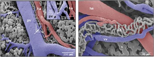 Peribiliary portal system in the monkey liver as evidenced by the injection replica scanning electron microscope method.