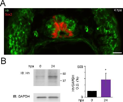 Romero, Damage-induced reactive oxygen species enable zebrafish tail regeneration by repositioning of Hedgehog expressing cells. 2018, Pubmed
