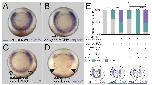 Fig. 6. Small GTPase Rab7 acts epistatically with the LE regulator Vps4. (A) Untreated specimen; (B) Injection of dn-vps4 mRNA or (C) rab7 TBMO in suboptimal dose led to minor reduction of myod1 expression on ventral side (black outlined arrowheads in C). (D) Parallel suboptimal injection of rab7 TBMO and dnvps4 mRNA resulted in absent myod1 expression (black arrowheads). (E) Quantification of results, different manifestations of myod1 expression in analysis are exemplified below quantification. Scale bar: 250â µm. |