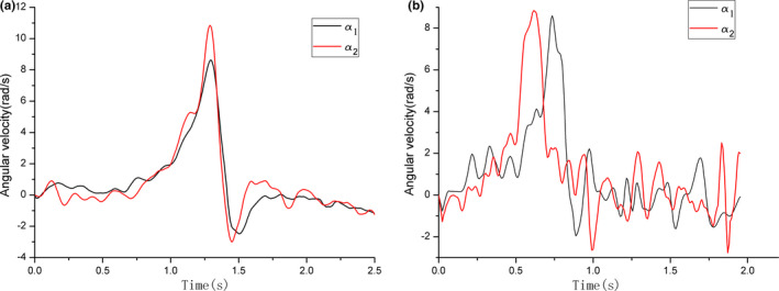 FIGURE 7. Angular velocity on knee (a1) and ankle (a2) of (a) Rana dybowskii and (b) Xenopus laevis