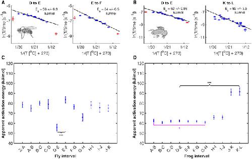 Figure EV2. Arrhenius plots for fly and frog