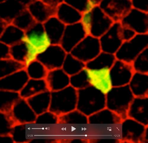 Still image from Video S1. Live imaging of MCC intercalation into the outer epithelium, related to Figure 3