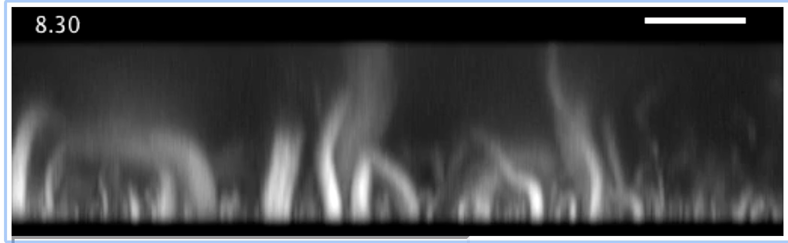 Still from Video 7. Time-lapse z-stack spinning disk confocal video of actin visualized with GFP-utrophin CH domain probe at 20â30 min. The video shows individual FLSs oscillating between growth and shrinkage phase. Scale bar represents 10 µm. Images were captured at 10-s intervals and are replayed at 6 frames per second. |