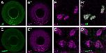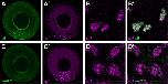 FIGURE 2: Assembly into L-bodies is correlated with vegetal localization. (A) A cryosection of a stage II oocyte is shown, with microinjected fluorescently labeled LE RNA (green) and endogenous vg1 mRNA (Aâ²) detected by FISH (magenta). The vegetal cortex at the bottom, and the scale bar = 50 µm. (B) High magnification view of the vegetal cytoplasm of a stage II oocyte with endogenous vg1 mRNA (magenta) detected by FISH and microinjected LE RNA (green) shown merged in Bâ². Scale bar = 10 µm. (C) A cryosection of a stage II oocyte is shown, with microinjected fluorescently labeled mutant LE RNA (mutLE) in green and endogenous vg1 mRNA (Câ²) detected by FISH in magenta. The vegetal cortex at the bottom and the scale bar = 50 µm. (D) High magnification view of the vegetal cytoplasm of a stage II oocyte with endogenous vg1 mRNA (magenta) detected by FISH and microinjected mutLE RNA (green) shown merged in Dâ². Scale bar = 10 µm. |