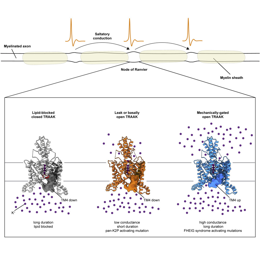 Kanda, TREK-1 and TRAAK Are Principal K+ Channels at the Nodes of Ranvier for Rapid Action Potential Conduction on Mammalian Myelinated Afferent Nerves. 2019, Pubmed