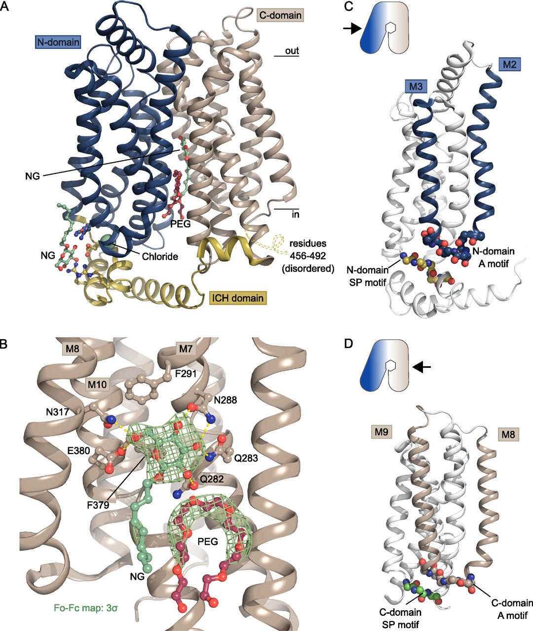 Intracellular binding of Chloride and NG stabilize the inward-open conformation.