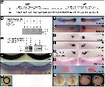 Supplementary Fig. 2. Enpp4 MO1 and MO2 specificity and phenotypes caused by injection of enpp4 MO2 (related to Fig. 2). (A-C) enpp4 MO1 and 2 specifically inhibited Xenopus enpp4 translation. (A) Alignment of the 5âUTR of Xenopus (Xl) and mouse (Mm) enpp4 sequences and position of enpp4 MO1 and 2 in relation to Xenopus enpp4 cDNA The ATG is indicated in bold and identical nucleotides (nt) by dots. Only 12 nt of enpp4 MO1 and 3 nt of enpp4 MO2 (located in the 5â UTR sequence) are conserved between the two species. (B) Xenopus enpp4 but not mouse enpp4 translation was blocked by enpp4 MO1 and 2. Autoradiograph of a 10% SDS-PAGE gel of in vitro translated 35S-Methionine radiolabeled enpp4 proteins. Capped synthetic enpp4 RNA was translated in vitro in the Rabbit Reticulocyte Lysate System (Promega). Translation of Xenopus enpp4 mRNA (0.5 μg) (Lane 1) and mouse Enpp4 (Lane 2) produced a protein of 51 kDa. Xenopus enpp4, but not mouse Enpp4 (Lane 4 and 6), was almost abolished in presence of 10 μg of enpp4 MO1 or MO2 (Lane 3 and 5). (C) enpp4 MO1 is specific to enpp4 mRNA. Autoradiograph of 10% SDS-PAGE gel of in vitro translated 35S-Methionine radiolabeled Xenopus enpp2 and 6 proteins. Xenopus enpp2 and 6 RNAs were translated in vitro in the Rabbit Reticulocyte Lysate System (Promega). Translation of Xenopus enpp2 mRNA (0.5 μg) produced a protein of 99 kDa (Lane 1) that is unaffected by the addition of 10 μg enpp4 MO1 (Lane 2). Translation of Xenopus enpp6 mRNA (0.5 μg) produced a protein of 51 kDa (Lane 3) that is unaffected by the enpp4 MO1 (Lane 4). Mm: Mus musculus; Xl: Xenopus laevis. (D-E) Microinjection of enpp4 MO1 did not alter general mesoderm formation. Embryos injected with 10 ng of enpp4 MO1 at 8-cell stage were examined by whole mount in situ hybridization with the myf4 (D), myoD (Dâ) and xbra (E) probes at stage 32, stage 39 and at stage 10.5 respectively. Asterisk denotes uninjected sides. The arrow in (E) indicates the site of injection marked by red-gal staining. (F-N) Microinjection of enpp4 MO2 resulted in similar phenotypes than those with enpp4 MO1. Embryos injected with 10 ng of enpp4 MO2 at 8-cell stage were examined by 3G8/4A6 antibody staining at stage 40 (F and G) or whole mount in situ hybridization with the following probes: slc5a1.1 (H), slc12a1 (I and J) at stage 37/38; lhx1 at stage 28, 23 and 14 (K, L and M respectively) and pax8 at stage 14 (N). Embryo shown in (J) was co-injected with 2 ng of mouse Enpp4 mRNA for rescue experiment. Asterisk denotes uninjected sides. Arrowheads indicate ectopic slc12a1 staining. The raw data and statistical analyses are provided in Supplementary Table 2. |