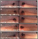 Supplementary Fig. 3. Phenotypes caused by the co-injection of the enpp4 and enpp6 MOs or enpp4 MO and enpp6 mRNA (related to Fig. 2). Injection of enpp6 mRNA, but not enpp6 MO, worsened the pronephric phenotypes caused by enpp4 knock-down. Injected embryos were analysed by 3G8/4A6 antibody staining at stage 41. (A) Embryo injected with 10 ng of enpp4 MO2 and 20 ng of enpp6 MO. (B) Embryo injected with 10 ng of enpp4 MO2 and 20 ng of control MO. (C) Embryo injected with 20 ng of enpp6 MO and 10 ng of control MO. (D) Embryo injected with 2 ng of enpp6 mRNA and 10 ng of enpp4 MO. (E) Embryo injected with 2 ng of enpp6 RNA and 10 ng of control MO. Asterisk denotes uninjected sides. The raw data and statistical analyses are provided in Supplementary Table 2. |