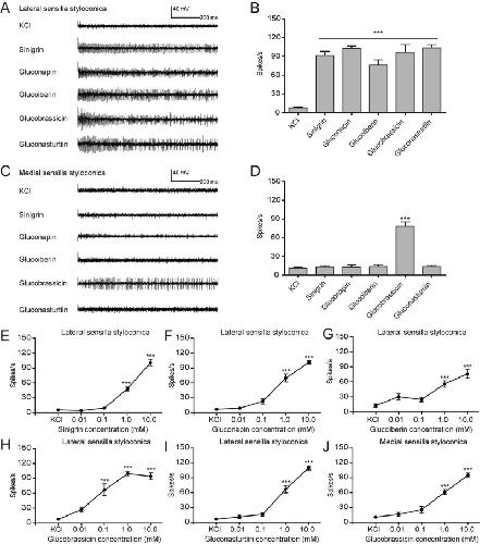 dose-response curves of medial sensilla styloconica to glucobrassicin