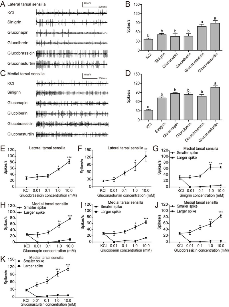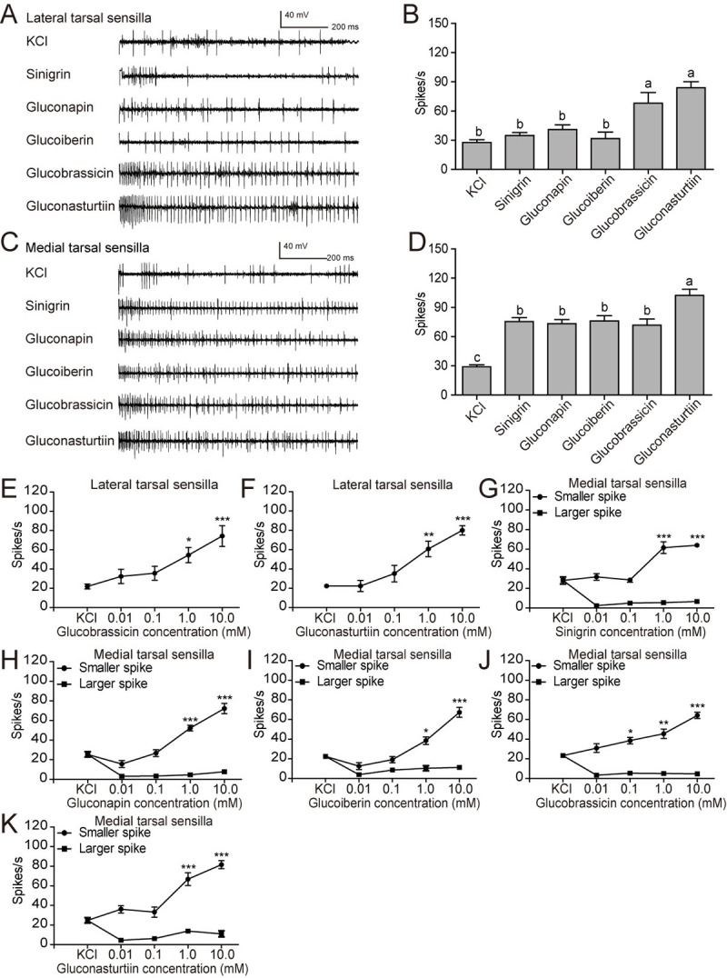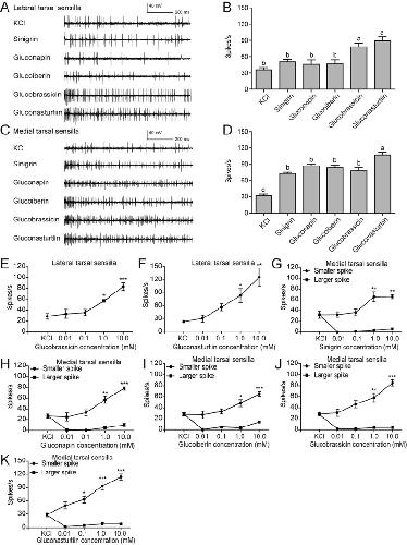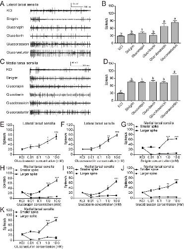 tarsal sensilla to glucobrassicin (n = 6–7) and