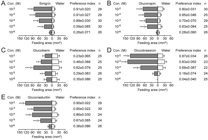 prothoracic tarsi. Sinigrin, n = 10–13; gluconapin,