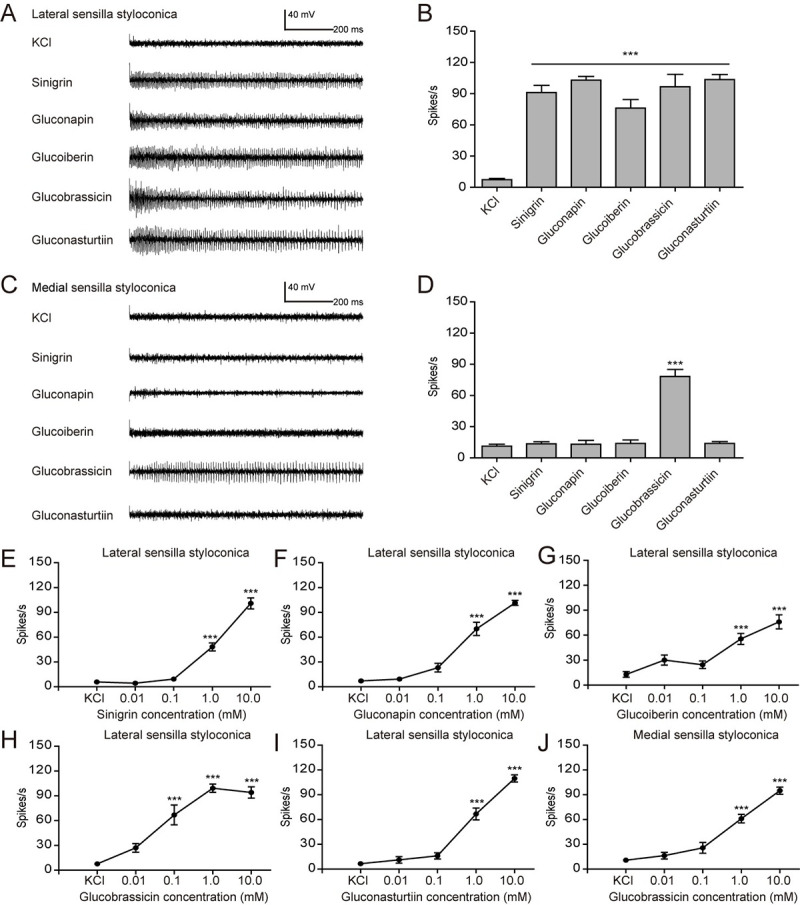Fig 2. Response properties of sensilla styloconica on larval maxilla of