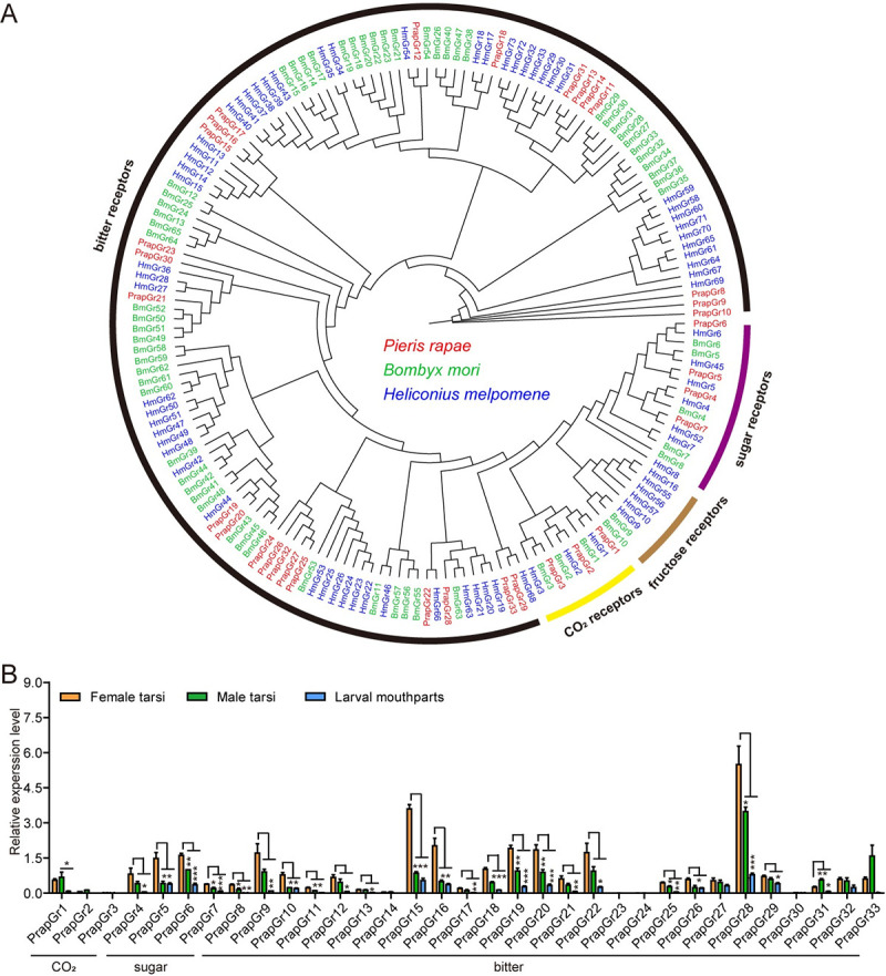 rapae.(A) Phylogenetic tree of candidate GRs from