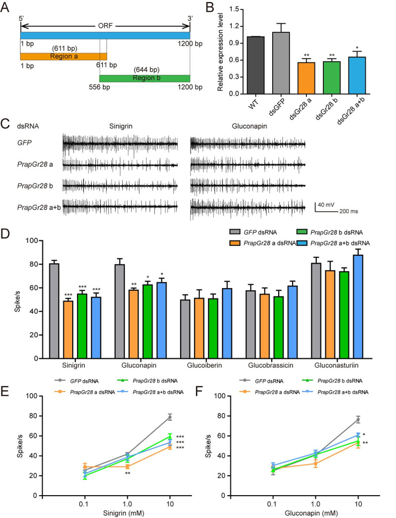dsRNA; dsGr28 b, PrapGr28 b dsRNA; dsGr28 a+b,