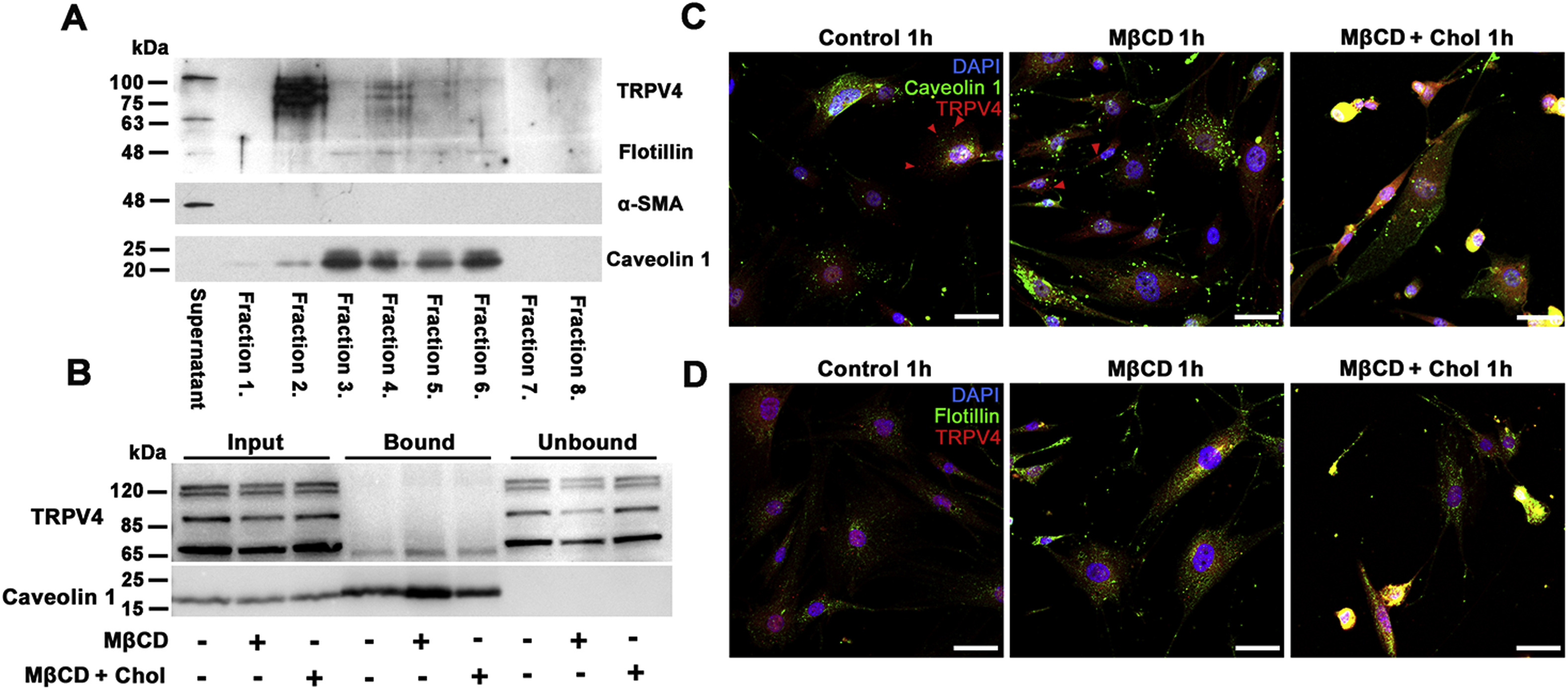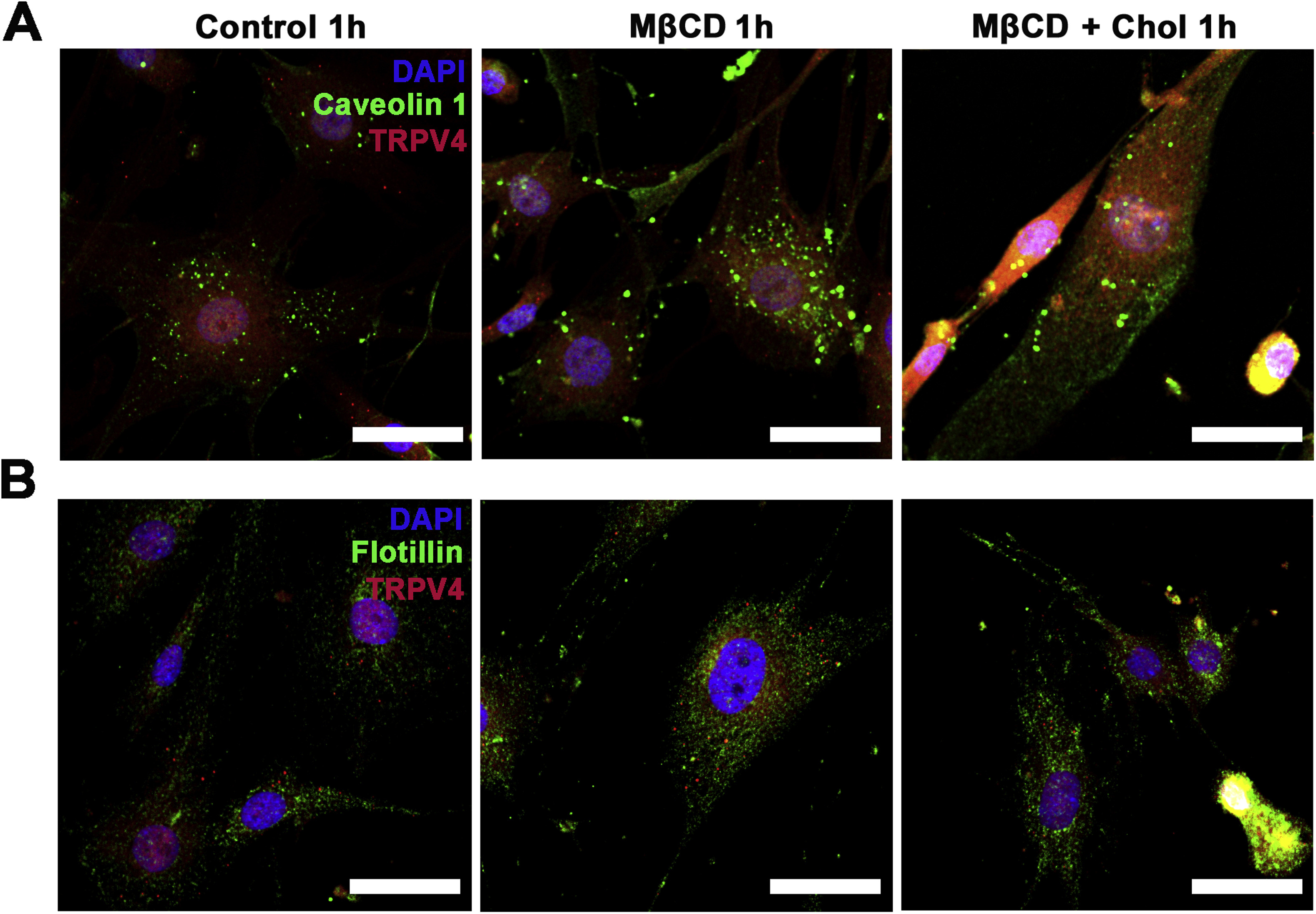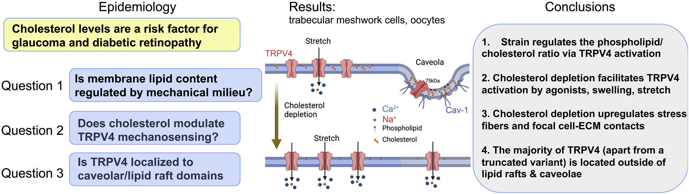 Membrane cholesterol regulates TRPV4 function, cytoskeletal expression, and the cellular response to tension.