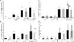 Fig. 3. Wild-type tadpoles treated with RU486 exhibit lack of CORT/TH synergy for thrb expression in tail. WT and RU486-treated tadpoles at NF 54 were treated with vehicle, 100 nM CORT, 2 nM T3, and 100 nM CORT plus 2 nM T3, and then gene expression was examined for (A) klf9 in tail, (B) thrb in tail, (C) klf9 in liver, and (D) thrb in liver. White portions of treatment bars for hormone co-treatments significantly higher than in T3 alone represent expression above additive response estimated from T3 and CORT responses singly. Black arrow indicates a synergistic response, defined as greater than one standard deviation above the estimated additive portion of the response. Error bars represent standard deviation (SD). Letters represent significance groups among all treatments within each panel. n = 8, WT = wild-type, GRKO = glucocorticoid receptor knockout, Veh = vehicle (ethanol treatment), CORT = corticosterone, T3 = active form of TH.