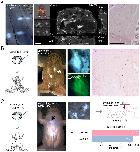 Fig. 1. Hyperactivation of the Wnt/β-catenin signaling pathway via truncation of Apc or constitutive activation of β-catenin induces desmoid tumors in X. tropicalis. (A) X. tropicalis carrying a germline heterozygous 1âbase pair deletion in the MCR of the apc gene (c.4120del, apcMCR-Î1/+) develop desmoid tumors with a 100% penetrance at 3 y of age (Left). The desmoid tumors present as T2 hyperintense foci on MRI (Middle, intersection of the crosshairs) and are characterized by classical desmoid tumor histopathology of long sweeping fascicles composed of uniform and slender fibroblasts/myofibroblasts (Right). (B) apc CRISPR/Cas9 injections in the vegetal-dorsal blastomere leads to mosaic mutant animals that manifest several desmoid tumors. These desmoid tumors exhibit active and high Wnt signaling activity as demonstrated by GFP expression using a Wnt reporter line (WntREs:dEGFP) (15) (Middle). Classical histopathology of desmoid tumors with long sweeping fascicles of bland fibroblasts/myofibroblasts exhibiting, in this case, local invasion into musculature (Right). (C) Injection of a BE3 cytosine base editor with a ctnnb1 gRNA leads to development of desmoid tumors. Sanger sequencing of a dissected desmoid tumor demonstrates base pair edits culminating in amino acid changes corresponding the human S45F mutation in CTNNB1 associated with sporadic desmoid tumorigenesis. Penetrance of desmoid tumors by 3 mo of age is 100% for apc CRISPR/Cas9-injected animals and 87.5% for ctnnb1 base-edited animals (Scale bar in histology picture, 100 µm). |