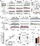 (J) Correlation (left panel; forelimb versus eye instantaneous frequency; R = 0.6569; Pearson test; p < 0.0001; r2 = 0.4315) and temporal relationship (right panel; μ = 358.763° ± 16.106°; r = 0.777) between the instantaneous frequency of the eye (peak velocity of quick phase) and forelimb movements (beginning of stance phase).