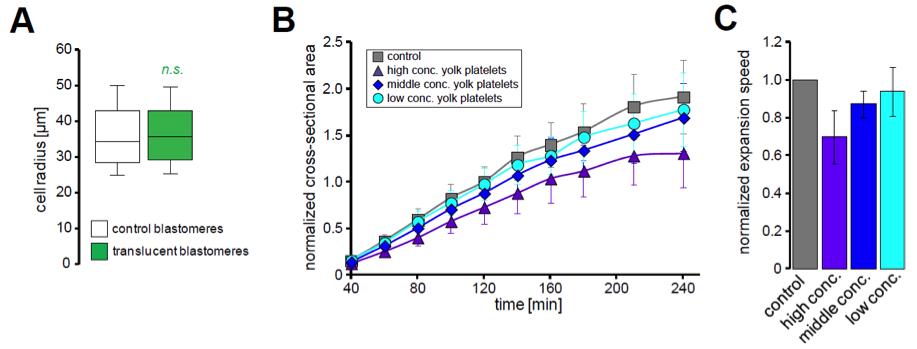 Figure S3. Translucent blastomeres and supplementation with yolk platelets in cell-free extracts