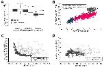 (A) Box plots of the calculated cell volumes from the animal blastomeres treated with cycloheximide for 180–240 min (white) and control buffer (grey) for each developmental stage [stage 6: n = 95 (cycloheximide), n = 59 (control); stage 6.5: n = 46 (cycloheximide), n = 97 (control); stage 7 (cleavage 7): n = 78 (cycloheximide), n = 152 (control)]. P values obtained using Wilcoxon test are shown compared to the control condition at each developmental stage. (B) Calculated nuclear volume in the condition treated with cycloheximide (grey) were plotted against the calculated cell volume of blastomeres on a log-log plot. The dataset in the control condition were fitted to two-segmented liner regression (blue and pink lines), which is identical to Fig. S1B. The blue line extended toward larger cell volume. (C) Measured duration, in which the cytokinesis duration was subtracted from duration for cell cycle, from the completion of one cytokinesis to the next, was plotted against the mean measured cell radius from each animal (grey diamonds: n = 226) and vegetal blastomeres (light grey crosses: n = 174). (D) Measured duration, in which the cytokinesis duration from the completion of one cytokinesis to the next, was plotted against the mean measured cell radius from each animal (grey diamonds: n = 219) and vegetal blastomeres (light grey crosses: n = 163).