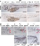 Figure 3. il11ra.L is widely and constitutively expressed in the intact tadpole and regenerating tail. (A) In situ hybridization of il11ra.L on a section of intact tadpole (upper) with an antisense probe, and (lower) with a sense probe. Anterior is left and dorsal is up. Scale bars: 500 µm. nâ=â4. (BâD) In situ hybridization of il11ra.L in a section of a regenerating tail. Anterior is left and dorsal is up. Arrowheads indicate notable signals. Scale bars: 500 µm. High magnification images of boxed areas in (C) and (D) are shown below. Scale bars: 100 µm. 1 dpa, nâ=â5; 3 dpa, nâ=â4; 5 dpa, nâ=â5.