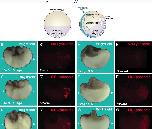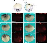 SI Appendix, Fig. S5. LiCl treatment by immersion at 32-cell stage radially dorsalized embryos and this was blocked by subsequent inhibition of V-ATPase with Baf. (A) Control embryo cultured in 0.1 MMR saline. (B) Embryo partially dorsalized by LiCl (300 mM for 7 min), note the blastopore at the top and lack of trunk-tail structures. (C) Embryos were treated with LiCl and subsequently immersed in Baf (5 μM for 7 min) in 0.1 MMR saline; note that the LiCl effect was blocked. (Aâ-Câ) In situ hybridizations of siblings with the pan-neural marker Sox2. Note the strong induction of a radial CNS surrounding the blastopore (arrowheads) by LiCl, and that Baf blocks the increased neural signal, consistent with the microcephaly phenotype observed after treatment of wild-type embryos. D, dorsal; A, anterior; P, posterior. Numbers of embryos analyzed were A=76; B=110; C=109 per condition, 4 independent experiments. Scale bars, 500 ïm. |