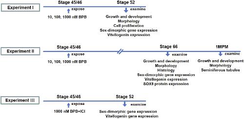 Fig. 5. Effects of bisphenol B (BPB) or 17ß-estradiol (E2) on gross gonadal morphology (A, B), seminiferous tubule formation (C), and hepatohistology (D) in Xenopus laevis following exposure from stages 45/46–1 month post-metamorphosis. Six tadpoles per group for seminiferous tubules by Laminin 1 Immuno-fluorescence staining. * indicates a significant difference compared with the control group (p < 0.05).