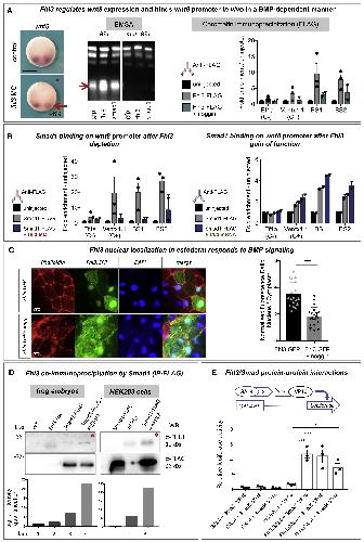 Figure 4. Fhl3 interacts with Smad1/5/8 and enhances Smad binding to wnt8 promoter