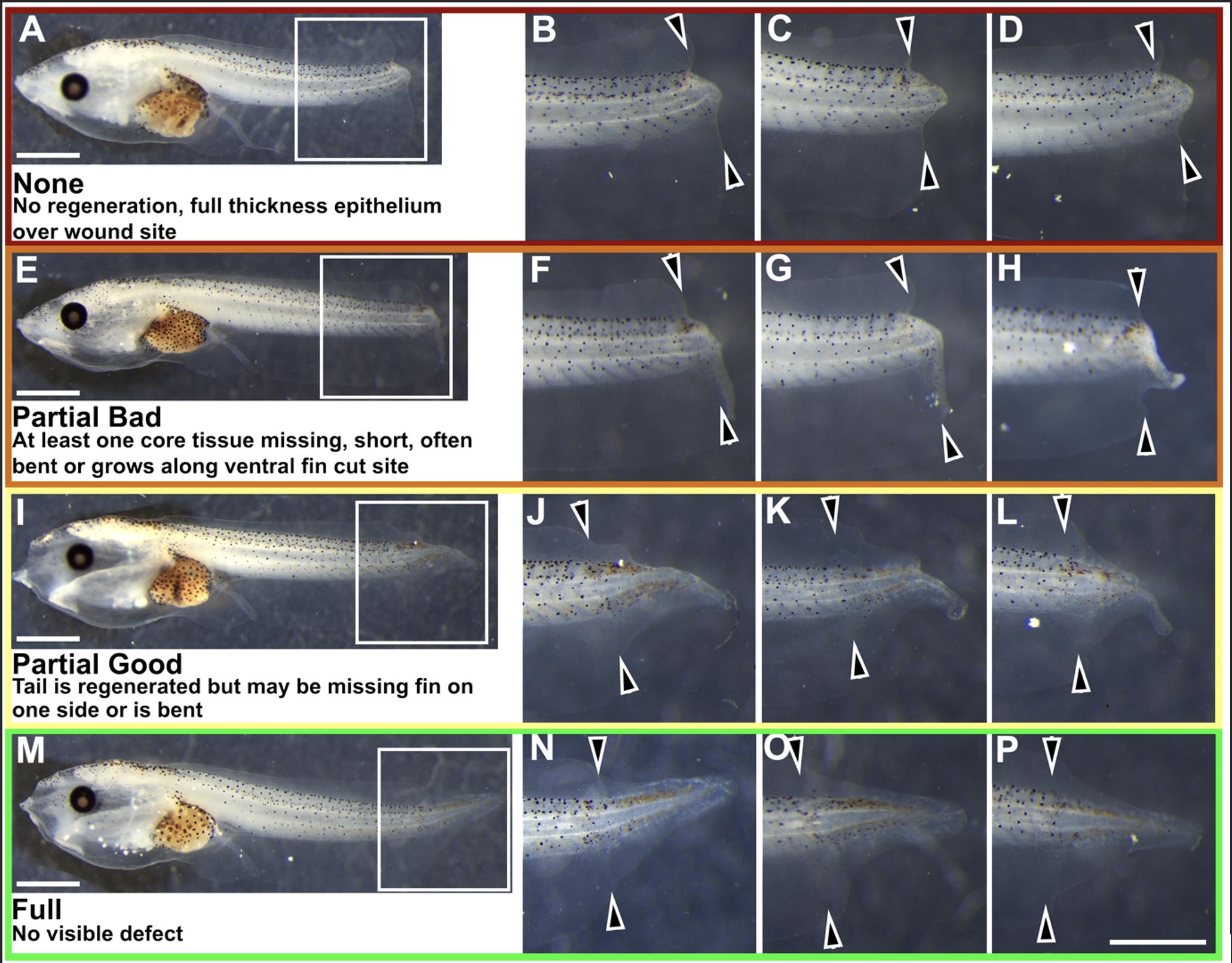 ****p < .0001. (A0âC0) are stacked categorical graphs of the same tadpoles, showing the proportion of each phenotype by dish. Compact letter display has been used to indicate statistical significance; each treatment is assigned a letter, with treatments within the same letter group having no statistically significant difference from each other. Extended CochranâArmitage test, followed by post hoc pairwise ordinal independence test with BenjaminiâHochberg correction. Raw data can be found in the Supporting information S1 [Color figure can be viewed at wileyonlinelibrary.com]