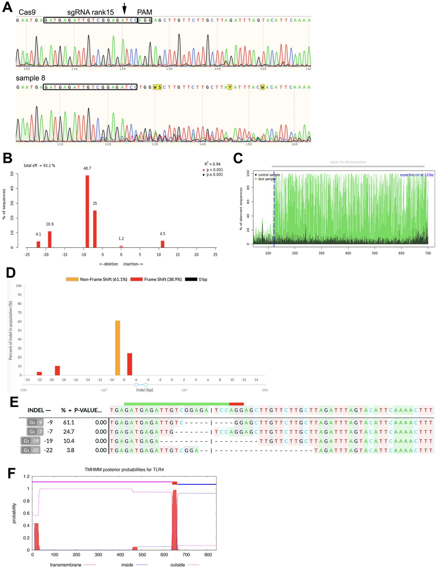 FIGURE 7. TLR4 editing with CRISPR/Cas9 correlates with reduced regeneration score at sibship but not individual tadpole level. (A) Schematic of X. laevis TLR4 protein, showing 19 predicted extracellular LRR domains, an internal Toll‐interleukin‐1 inhibition domain (TIR) predicted by NCBI CDD and a single transmembrane domain (predicted by TMHMM server v2.0).