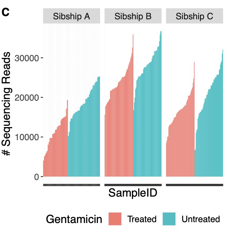 Figure 1. The tadpole tail skin microbiome varies between sibships and can be altered dramatically by raising tadpoles in antibiotics.