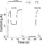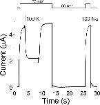 Supplementary Figure 2. Fast perfusion system delivers 5 s applications of external solution exchange to whole oocytes. Representative time course of solution exchange from 100 mM NaCl (Na) to 100 mM KCl (K). Currents from KCNQ2 channels in response to a +20 mV pulse from a holding potential of â80 mV followed by a tail potential of â80 mV. Extracellular solution was ND96 (100 mM NaCl) except for the 5 s application for which the 100 mM NaCl was exchanged for 100 mM KCl. Shown are three cycles of solution exchanging as shown in the protocol (top). The application of 100 mM KCl quickly reduces (Ï=0.21 ± 3.6 s) the outward currents, and the reintroduction of the 100 mM NaCl quickly (Ï=0.32 ± 1.5 s) restores the currents. |