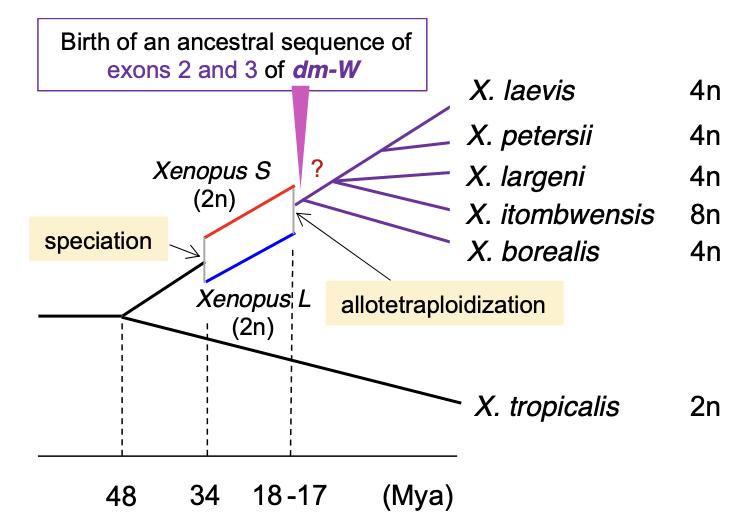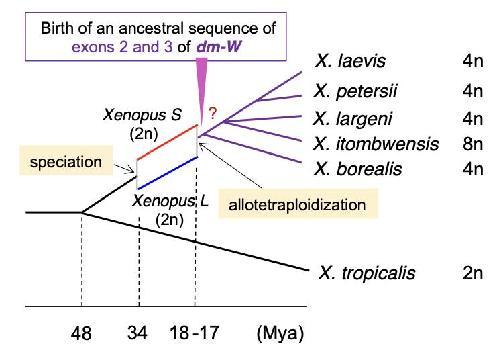 Supplementary fig. 1. Xenopus frog diversification and the emergence of dm-W after allotetraploidization