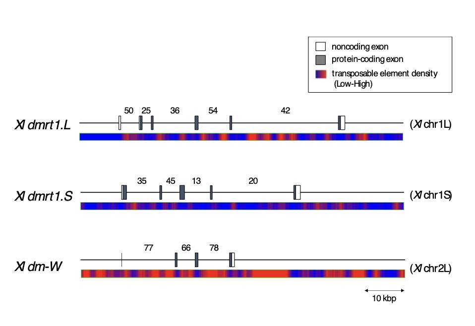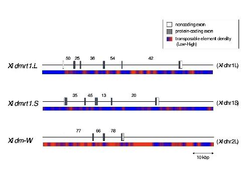 Supplementary Fig. 4. Density of transposable elements (TEs) in X. laevis dm-W, dmrt1.L, and dmrt1.S and flanking regions