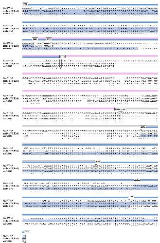 Supplementary fig. 6. Nucleotide sequence alignments among five hAT-10-derived sequences including dm-W Ex4 from X. laevis and its corresponding one of Xt hAT-10