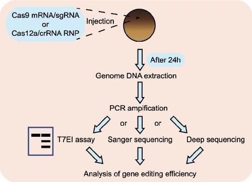 Figure 1. Flow chart of CRISPR Cas9 or LbCas12a disruption efficiency detection in X. tropicalis.