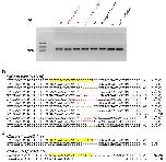 Fig. S8. NGG xCas9 3.7 is ineffective in X. tropicalis embryos. (a) T7EI assay data show the mutagenic activities of xCas9 3.7 targeting NGG PAM sites in X. tropicalis embryos. The targeting sites labelled in red have been further verified by Sanger DNA sequencing shown in c. C, control. (b) Sanger DNA sequencing data show the mutations of bace2 induced by SpCas9. (c) The upper panel shows the Sanger DNA sequencing data of the bace2 mutation induced by xCas9 3.7 targeting exactly the same site shown in b. The lower panel shows the Sanger DNA sequencing data for xCas9 3.7-apc-163 site. For all the panels in b and c, the wild-type sequence is shown at the top with the target site highlighted in yellow and the PAM sequence in blue text. Red dashes indicate deletions and lowercase letters in red indicate insertions or mutations. The numbers in parentheses represent the ratio of this sequence in the total colonies sequenced.