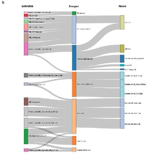 Fig. 3: Cell-type evolution between adult Xenopus, zebrafish, and mammals.