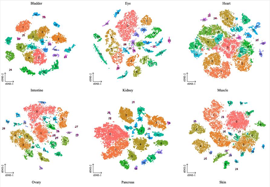 Fig. 2: Cellular heterogeneity in diverse adult Xenopus laevis tissues.