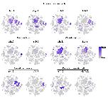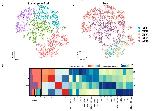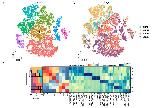Supplementary Figure 5. [top 6 panels] t-SNE analysis of XCL tissues collected from adult Xenopus. t- SNE maps of single-cell data from bladder, eye, heart, intestine, kidney, muscle, ovary, pancreas, skin, spleen, stomach and testis. Cells are colored by cell-type cluster.