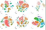 Supplementary Figure 5. [bottom 6 panels] t-SNE analysis of XCL tissues collected from adult Xenopus. t- SNE maps of single-cell data from bladder, eye, heart, intestine, kidney, muscle, ovary, pancreas, skin, spleen, stomach and testis. Cells are colored by cell-type cluster.