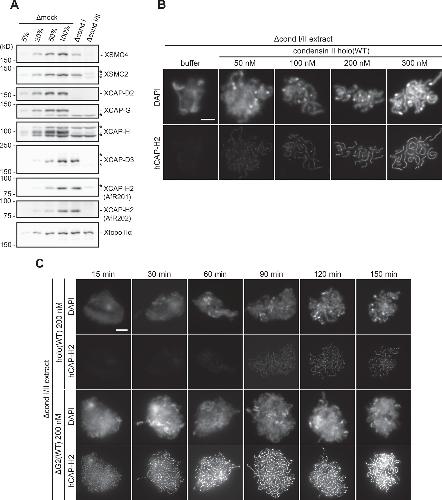 Ono, Differential contributions of condensin I and condensin II to mitotic chromosome architecture in vertebrate cells. 2003, Pubmed , Xenbase
