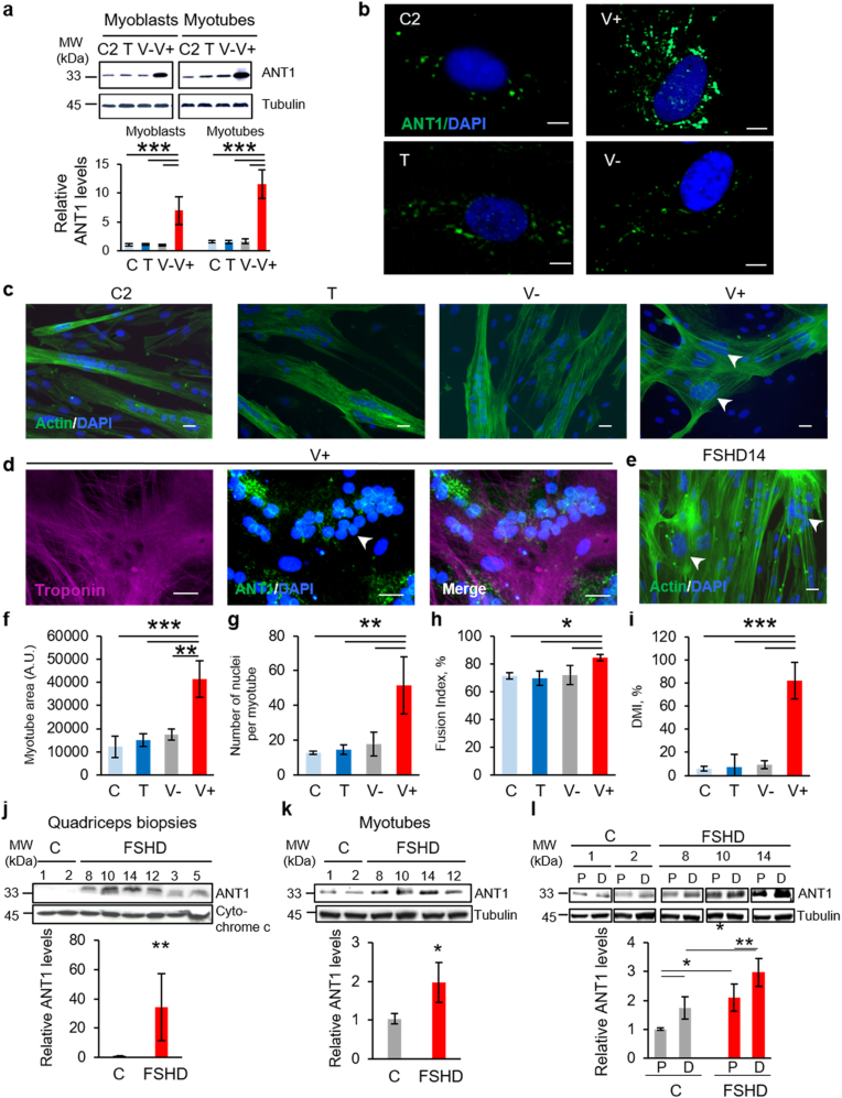 Laoudj-Chenivesse, Increased levels of adenine nucleotide translocator 1 protein and response to oxidative stress are early events in facioscapulohumeral muscular dystrophy muscle. 2005, Pubmed