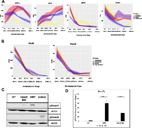 Genes referenced: a2m bix1 bmp2 bmp4 bmp7 dand5 dlx3 eomes evx1 foxi1 foxi2 grhl1 grn gsc gtpbp2 id3 krt12.4 mix1 msx1 otx1 otx2 post pou5f3.3 pygb smad1 smad2 sox11 sox17a sox17b sox2 sox3 tgfb1 vegt ventx2 ventx2.2 wnt8a zic1