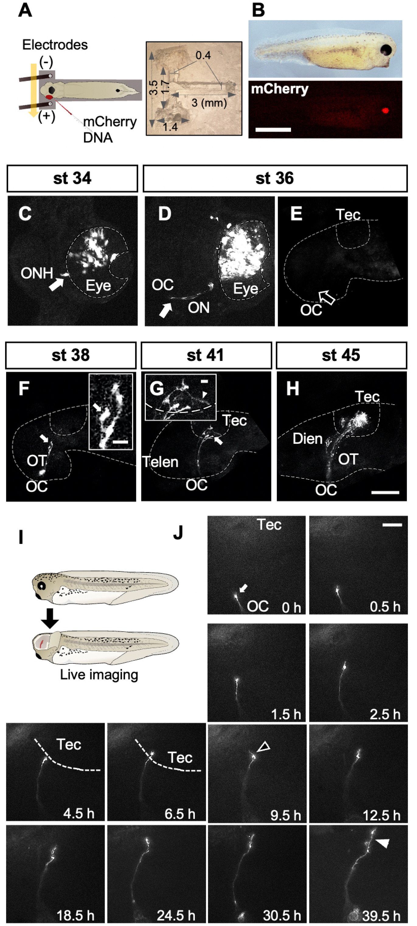 Fig. 2. Visualization of retinotectal pathway development by electroporation.