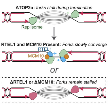 Figure 3. RTEL1 and MCM10 cooperate to promote fork merger